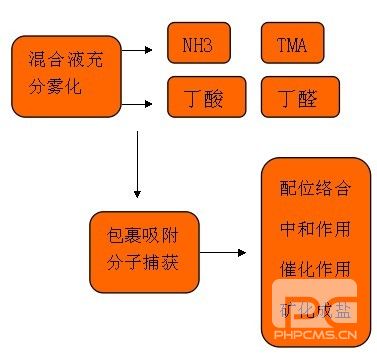 經活化以后的異味分子異常活潑,并主動與空間中的自由基因發生反應。