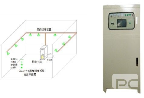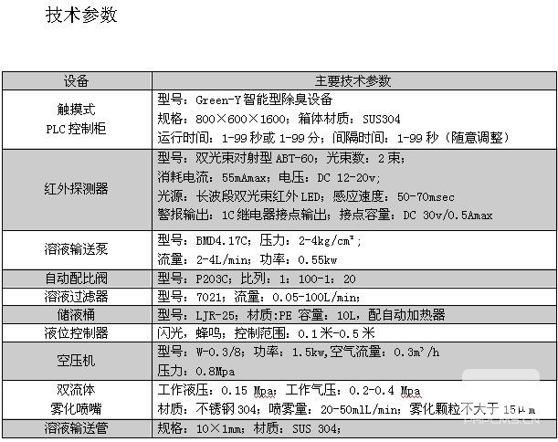 Green-Y智能型除臭設(shè)備由Green-Y型控制裝置、紅外線探測裝置、除臭工作液供應(yīng)裝置、壓縮空氣裝置、霧化噴嘴裝置和保溫加熱以及管道吹掃等系統(tǒng)組成。